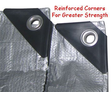 Blue tarp fabric weave count: 8 x 8.Blue tarps have rust resistant grommets approximately every 3 feet.Heat Sealed Seams and Rope Reinforced Hems.Water, mildew and rot resistant. Tear and acid resistant.Blue tarp's size is cut size. Blue tarp's finished size is up to 2% or 6" smaller, whichever larger.Blue tarps are widely used for roof tarps, construction tarps, landscaping tarps, and woodpile tarps, camping tarps or any other places where cheap tarps are needed as a temporary or short-term solution.